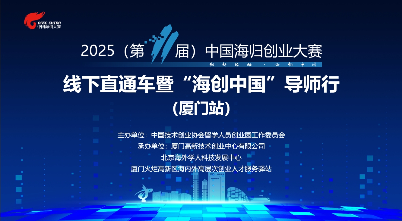 4月24日,2025(第11屆)中國海歸創業大賽線下直通車暨“海創中國”導師行(廈門站)活動在廈門高新技術創業中心成功舉辦。本次活動由中國技術創業協會留學人員創業園工作委員會主辦,廈門高新技術創業中心有限公司、北京海外學人科技發展中心、廈門火炬高新區海內外高層次人才創業服務驛站聯合承辦。留創園工委會產業與投資促進部部長寶玥、江蘇省高新技術創業服務中心成果轉化與產業發展服務部主任張瑋、廈門高新技術創業中心有限公司副總經理孫瑞彬等大賽主辦和聯合主辦方、活動承辦方代表出席。