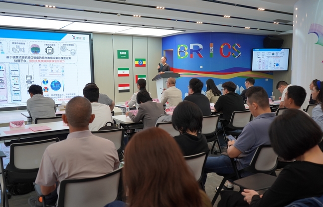 7家聚焦前沿科技的廈門本地海歸參賽企業在活動現場進行了路演,覆蓋腦機接口、人工智能、生物醫藥、低空經濟等戰略性新興產業領域。其中,廈門北洋瑞恒展示“可穿戴腦機共融心智健康平臺”,以腦機交互技術革新心理健康管理;萊特集盛光學推出“全功能檢測萬用儀器”,突破高端檢測設備國產化瓶頸;納智殼生物的“基于人工智能的健康管理平臺”,實現無感化健康監測;羽擎智能自主研發“無人機高速防撞系統”,填補低空自主避障技術空白;騰基醫療的“基于基因編輯晶體管技術的腫瘤快速篩查”,將檢測效率提升10倍;博智深度智能的“大模型驅動的群體具身智能模擬器Crowdverse”,賦能現代園區智慧化運營;立方幻境的“AI人形機器人醫學培訓系統”,推動智慧醫療教育變革。